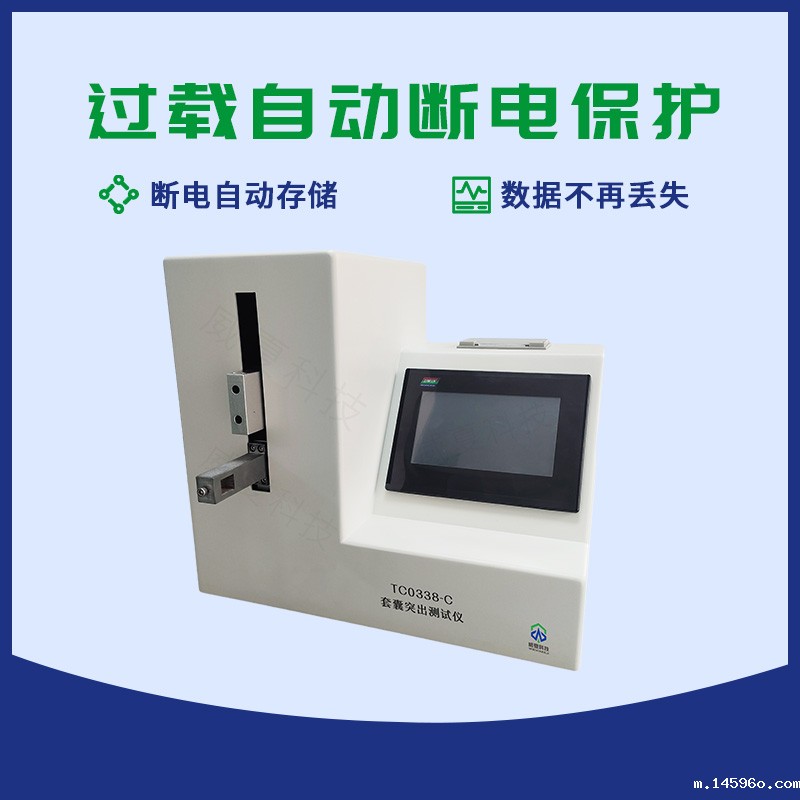 TC0338-C套囊突出测试仪设备由可编程控制器,触摸屏、压力传感器、加压装置和机载打印机等组成,提供中英文菜单显示,具备人机对话设定各项参数自动运行测试模式。