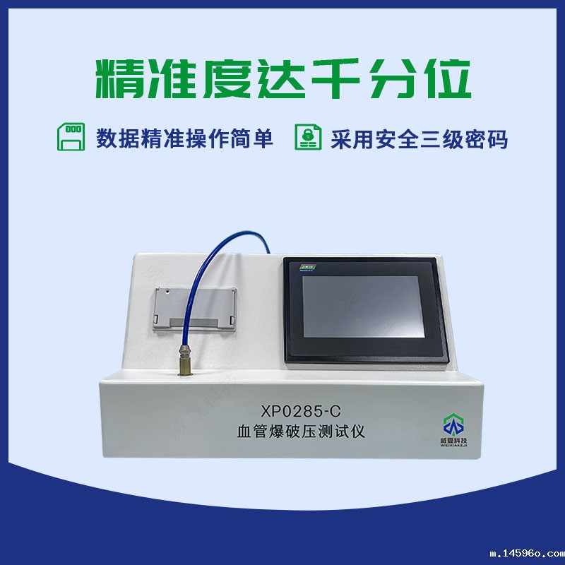 XP0285-C血管爆破压测试仪是国家检验生产厂家产品性能的高效检测设备,主要用于测定一次性血管内导管爆破压的物理特性,是鉴定血管内导管爆破压力性能的重要手段之一。由可编程控制器,触摸屏、力值传感器、高压发生装置,防爆水槽和机载打印机组成。