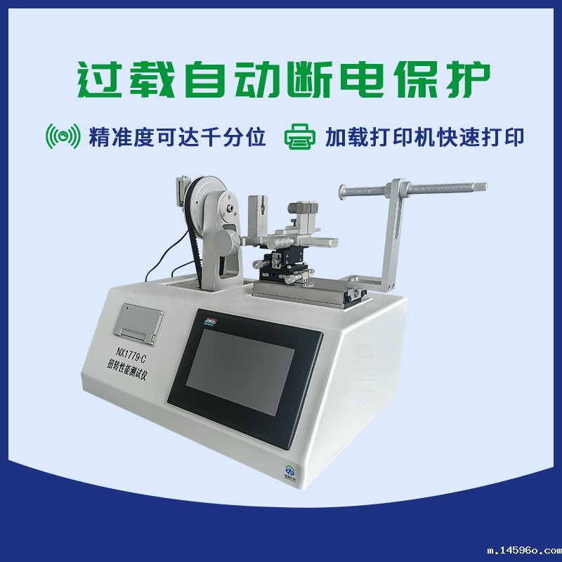 NX1779-C扭转性能测试仪是国家检验生产厂家产品性能的高效检测设备。由可编程控制器,触摸屏,力值传感器,传动装置,机载打印机等组成。