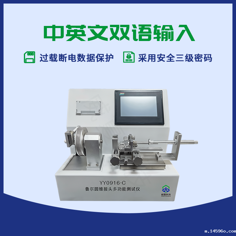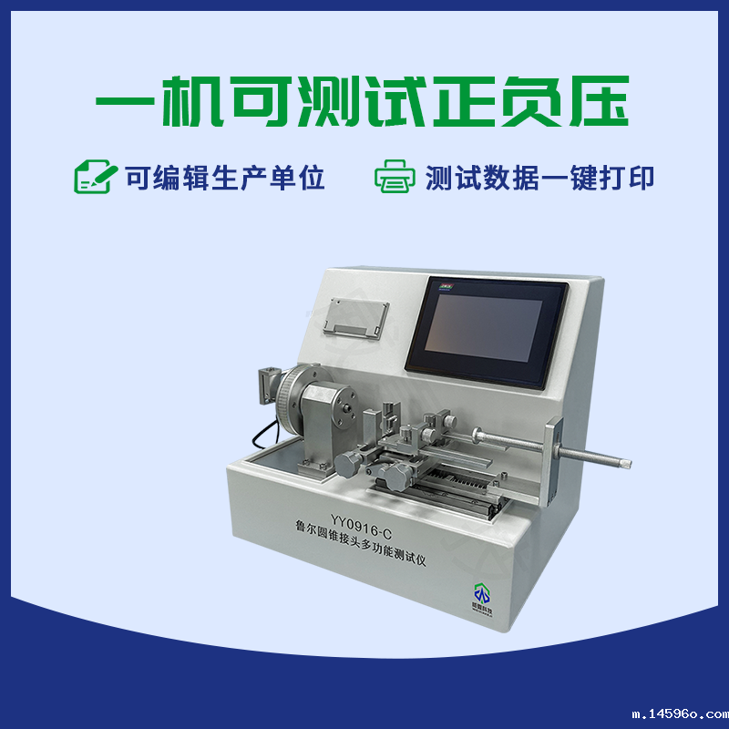 YY0916-C鲁尔圆锥接头综合测试仪主要用于测定鲁尔接头漏液、漏气、分离力、旋开扭矩、易装配性、抗滑丝性、抗过载性、应力开裂、压力衰减泄漏、正压液体泄漏、负压空气泄漏等各项性能。